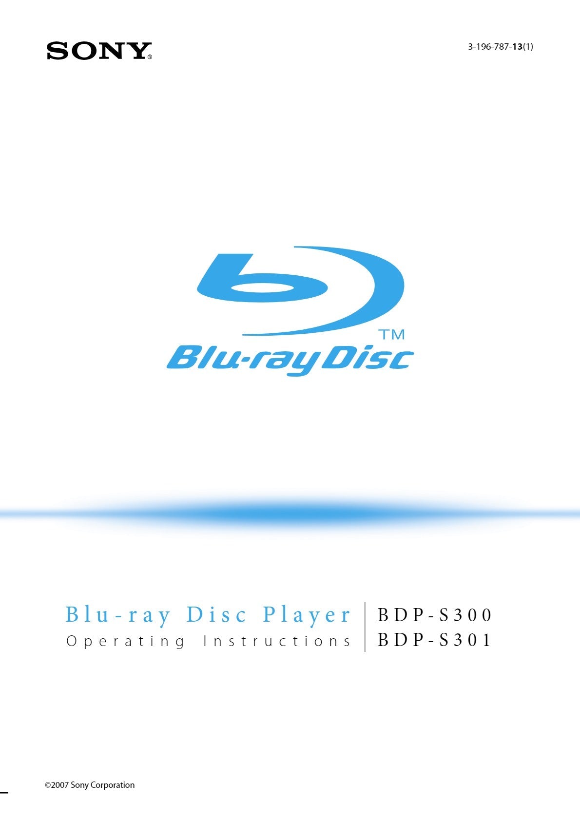 Sony BDP-S300 Blu-ray Player Owners Manual