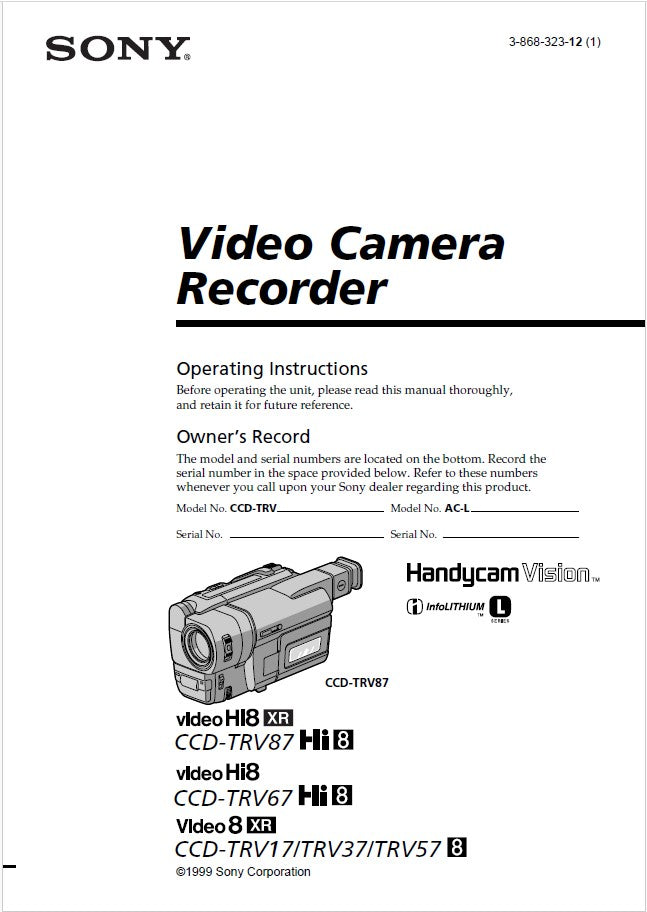 Hard copy printed manual. This Sony Camcorder manual will ship within 24 hours of purchase. Read more