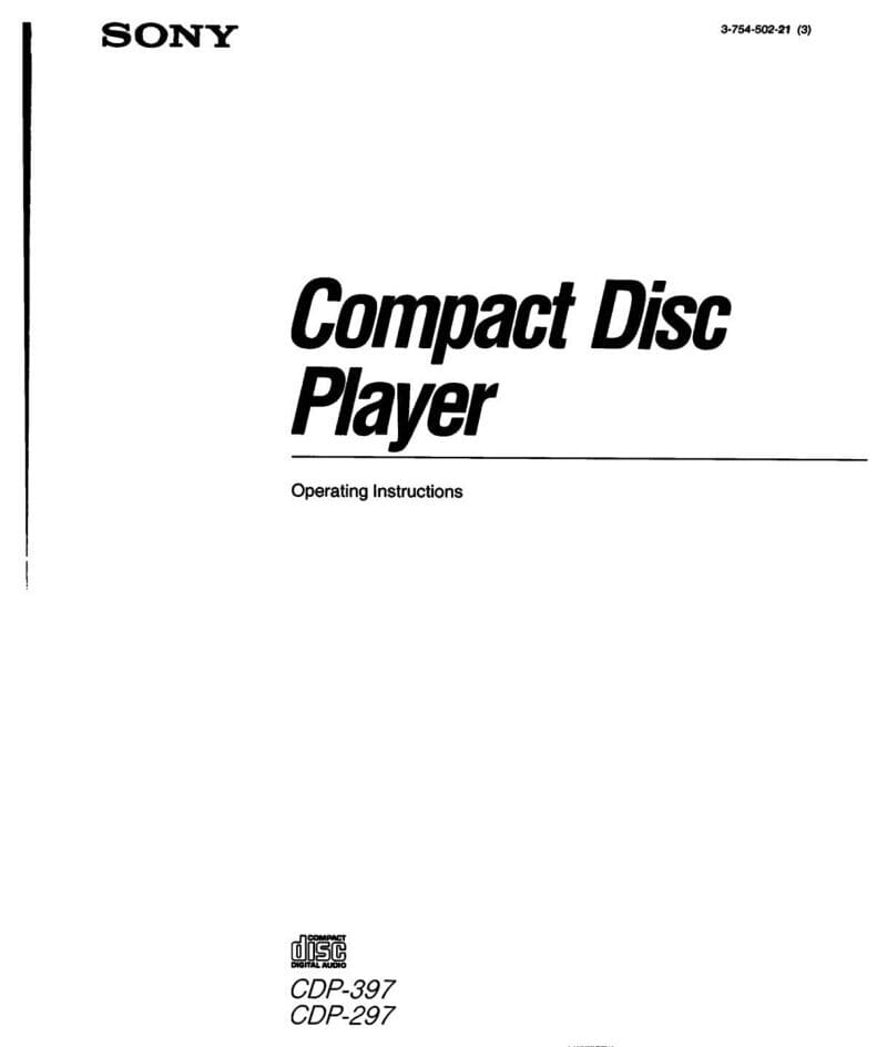 Sony CDP-397 CD Player Owners Manual