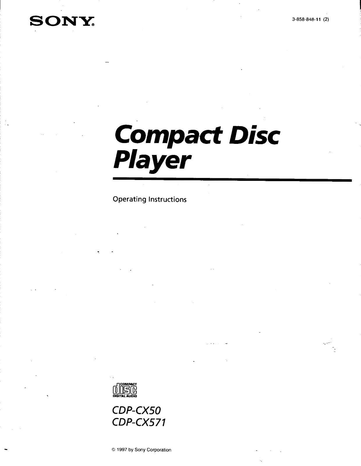 Sony CDP-CX50 CDP-CX571 CD Player Owners Manual