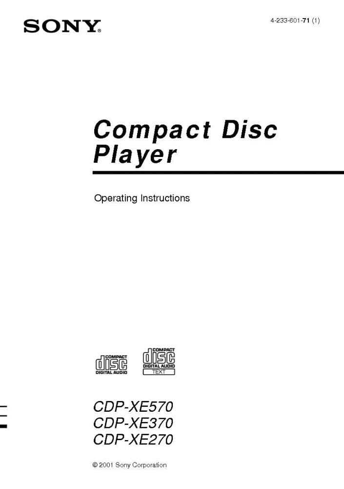 Sony CDP-XE370 CD Player Owners Manual