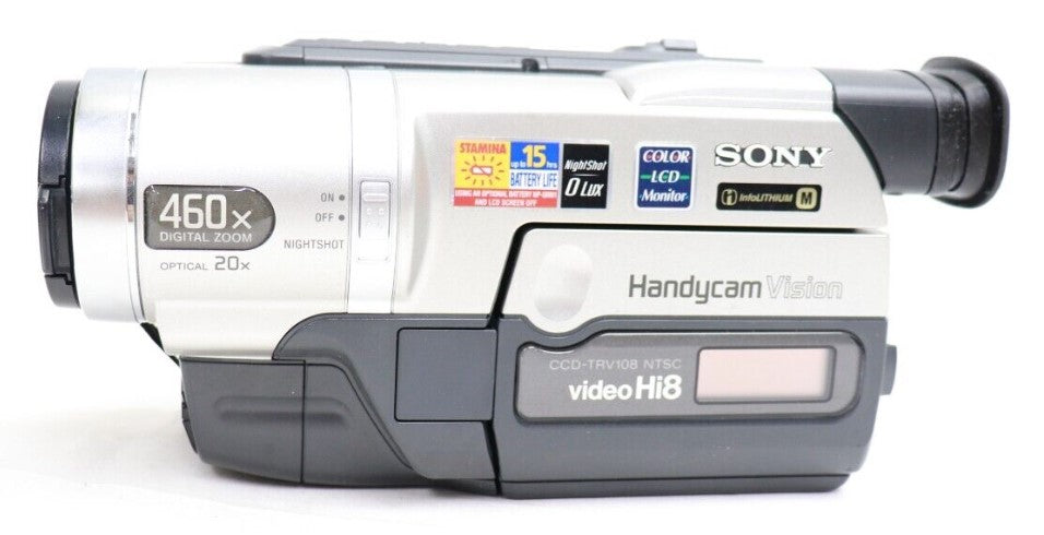 The Sony CCD‑TRV108 is a dependable Hi8 camcorder perfect for playing and transferring your 8mm and Hi8 tapes to PC or DVD. With NightShot infrared system and FireWire output, it simplifies archival of old footage with high-quality playback and versatile connectivity.