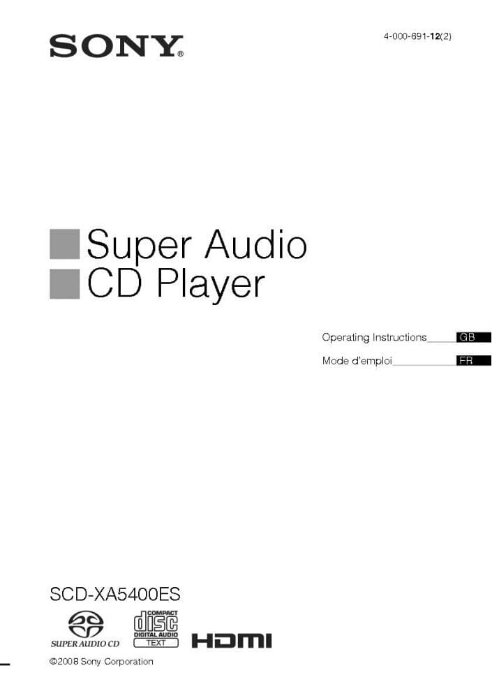 Sony SCD-XA5400ES Super Audio CD Player Owners Manual