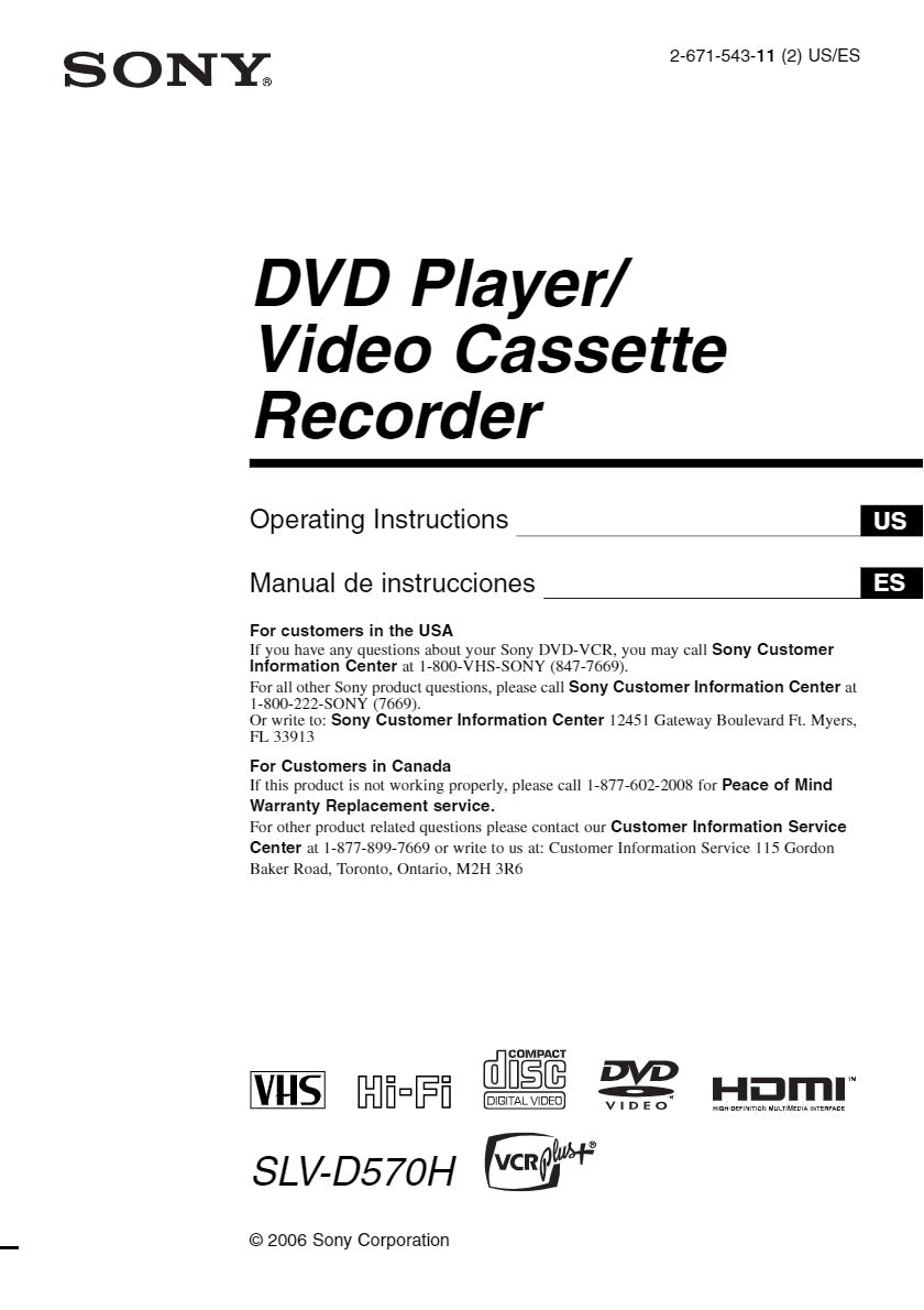 Sony SLV-D570H VCR DVD Owners Manual