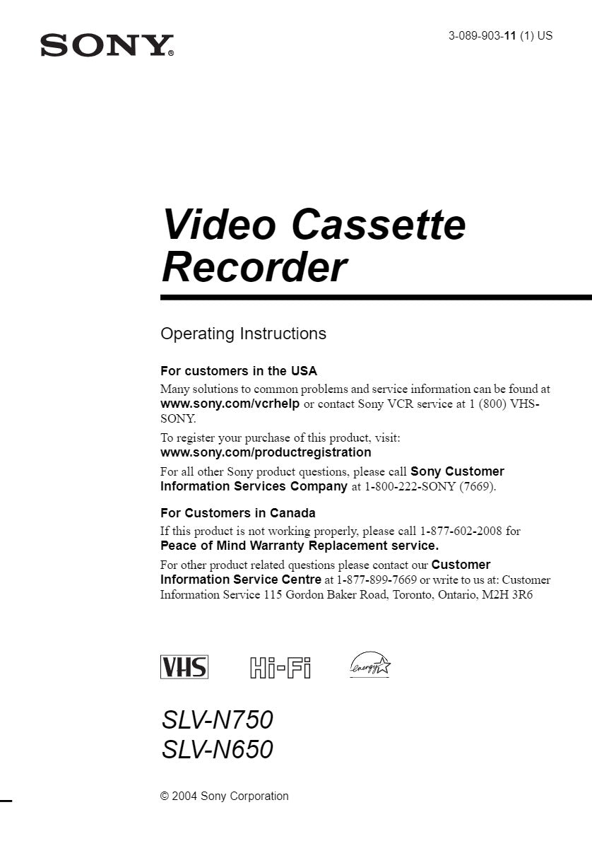 Hard copy printed manual. This Sony VCR manual will ship within 24 hours of purchase. The manual pages are printed... Read more