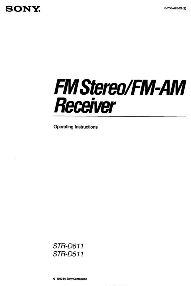 Sony STR-D511 STR-D611 AV Receiver Owners Manual