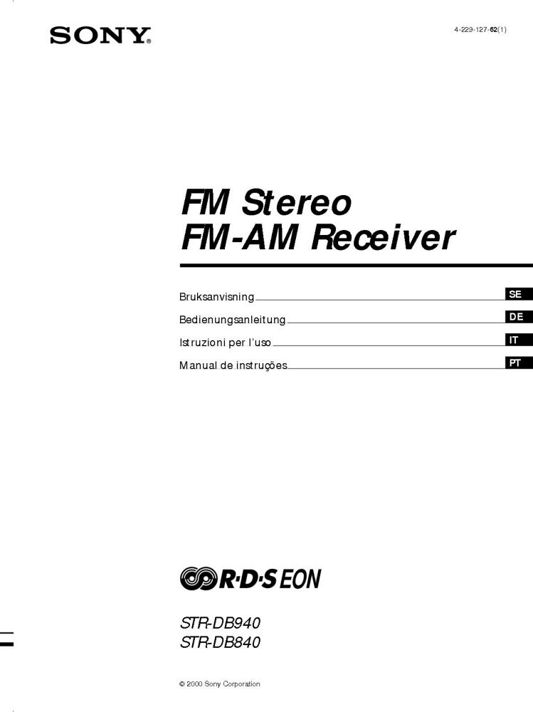 Sony STR-DB840 Amplifier Receiver Owners Instruction Manual