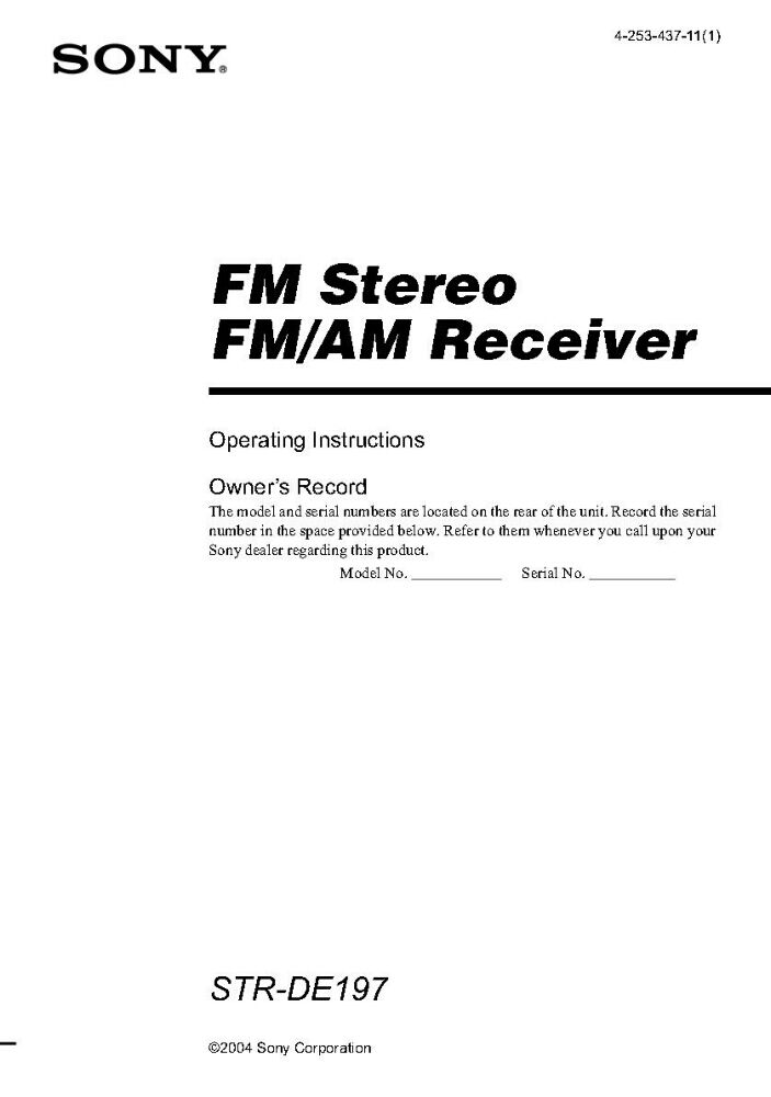 Sony STR-DE197 AV Receiver Owners Manual