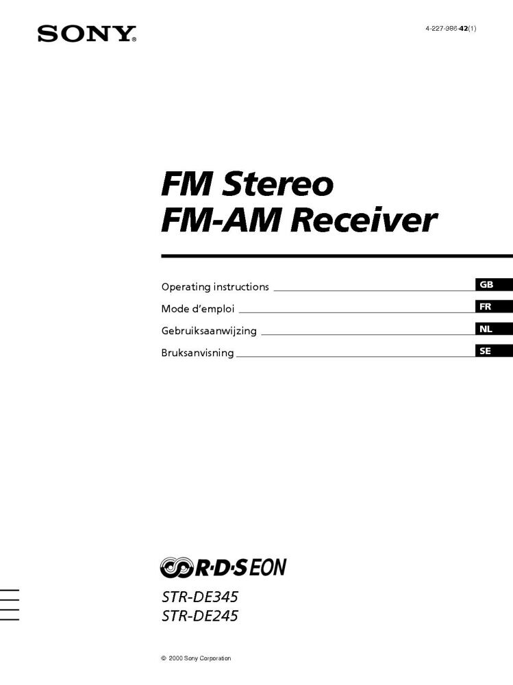Sony STR-DE245 Amplifier Receiver Owners Instruction Manual