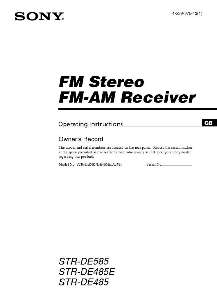 Sony STR-DE485E Amplifier Receiver Owners Instruction Manual