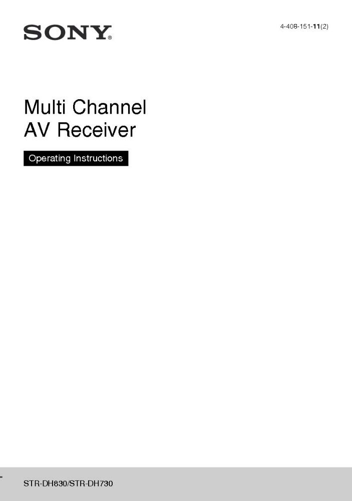 Sony STR-DH730 STR-DH830 AV Receiver Owners Manual