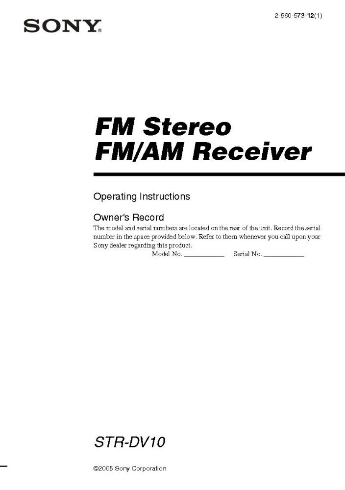 Hard copy printed manual. This Sony Receiver manual will ship within 24 hours of purchase. The manual pages are printed... Read more