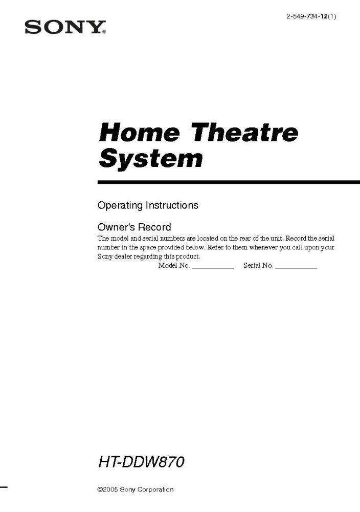 Sony STR-K870P HT-DDW870 AV Receiver Owners Manual