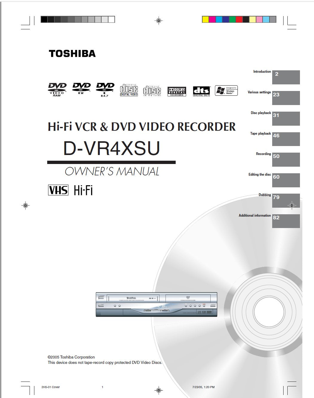 Paper copy Manual for Toshiba D-VR4XSU Read more