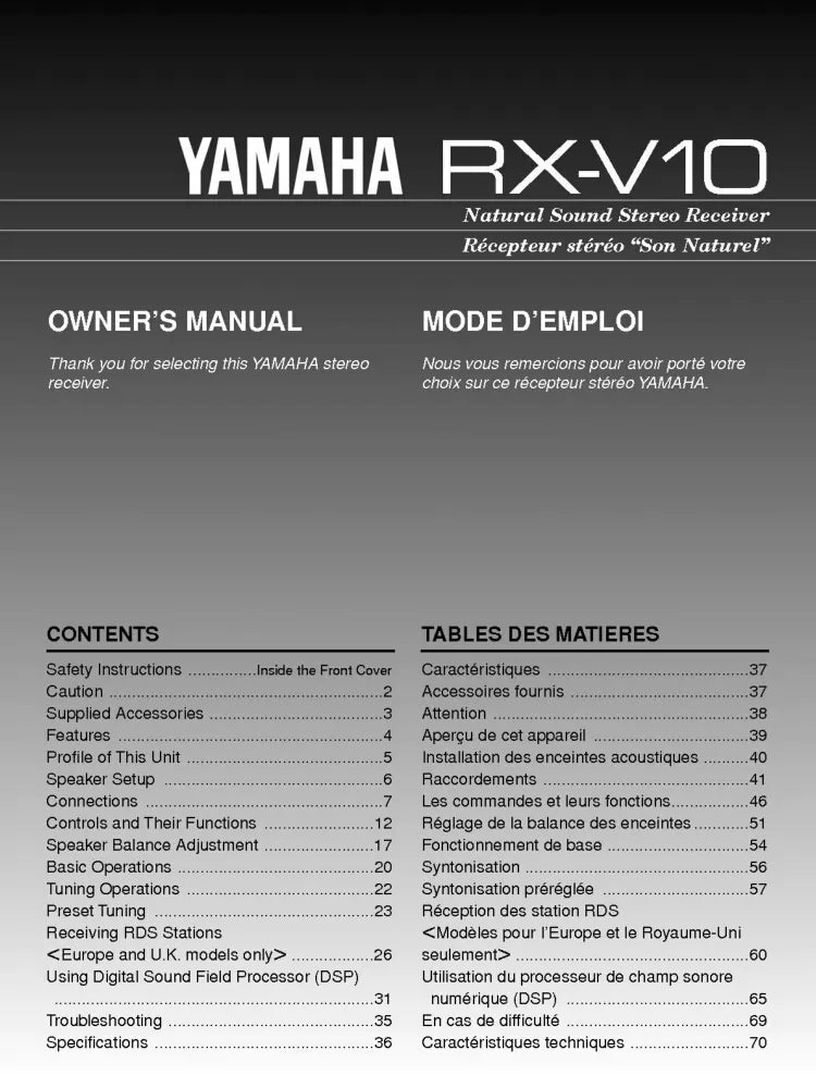 Yamaha RX-V10 Receiver Owners Manual